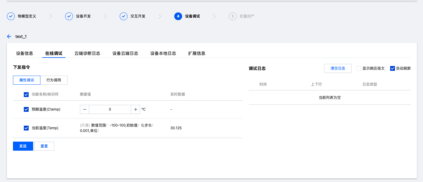 确认信息正确后,即可保存创建的功能。然后再创建一个下发控制的功能,演示中创建一个预期温度。
