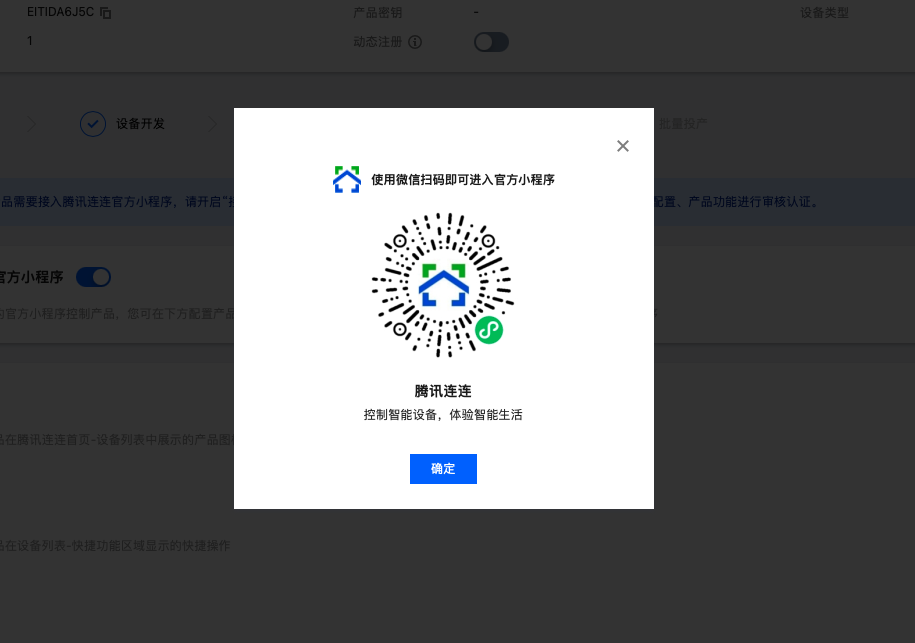 设备与服务器能够成功通讯后,接下来尝试使用小程序,检查是否能够成功获取到产品相关信息与实现控制。