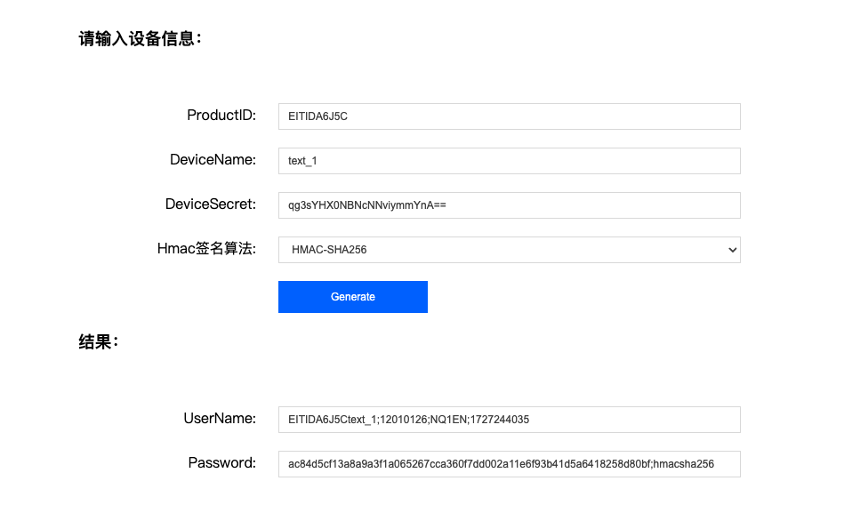 随后将对应的参数填入,确认无误后,即可点击生成UserName和Password。