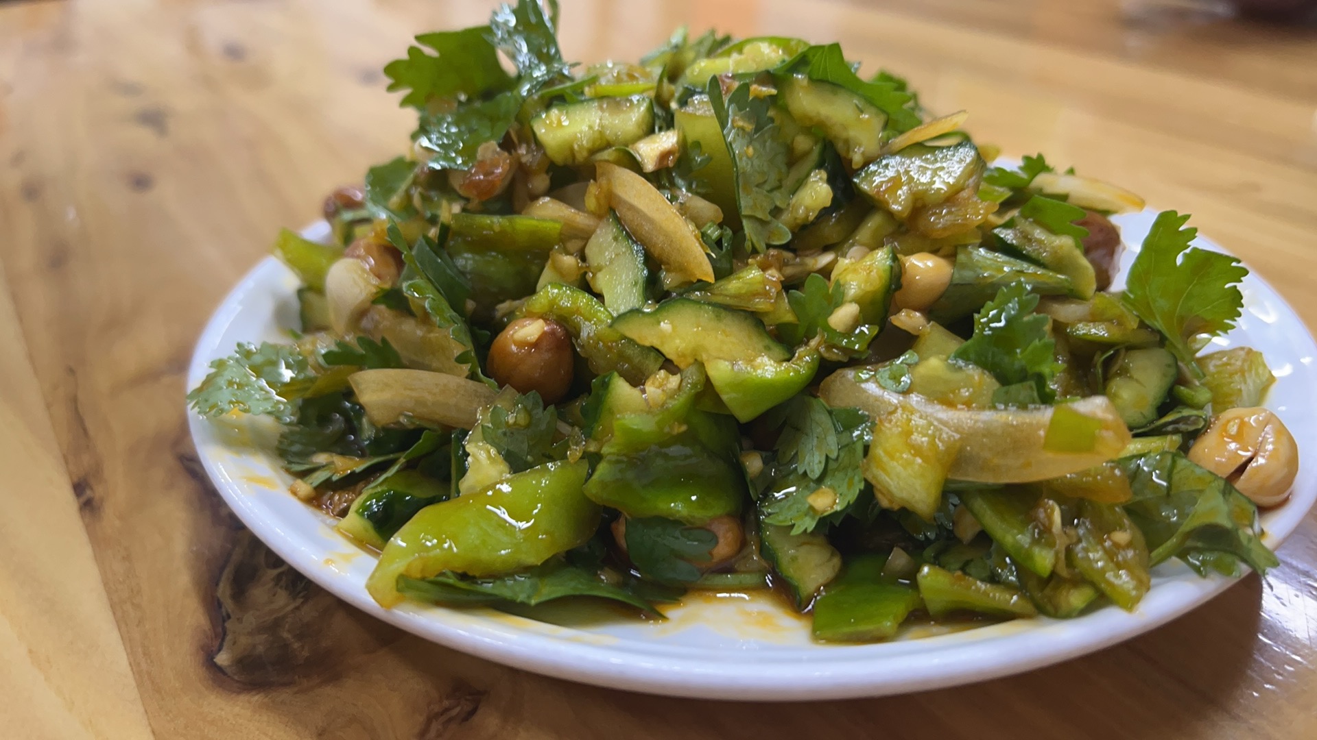 钻进本地人扎堆的「土包滋」,瞬间被蒸笼的海浪吞没。地皮菜包子是山野派代表——山西特产的褐藻类野菜滑如云朵,裹着鸡蛋粉丝在齿间弹跳,一口咬出林间清气。酱肉包则上演暴烈美学:拳头大的包子里,卤肉块淌着琥珀色肉汁,蘸上老陈醋的瞬间,酸香劈开油腻,鲜味直冲天灵盖!更绝的是韭菜鸡蛋虾米包,小虾米在碧绿韭菜里埋下海鲜地雷,三只下肚便撑得扶墙走。配一碟炸得酥脆的老虎菜,酸辣花生在舌尖噼啪炸响,晋菜的豪横在此刻淋漓尽致。